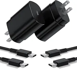 Type C Charger, 2Pack 25W PD USBC Wall Charger Super Fast Charging Block & 6ft Android Phone Cable Cord for Samsung Galaxy S25 Ultra/S25+/S25 S24 S23 S22 S21 S20 (Plus Ultra)/Note 20 10 9 8/ S10 S9 S8