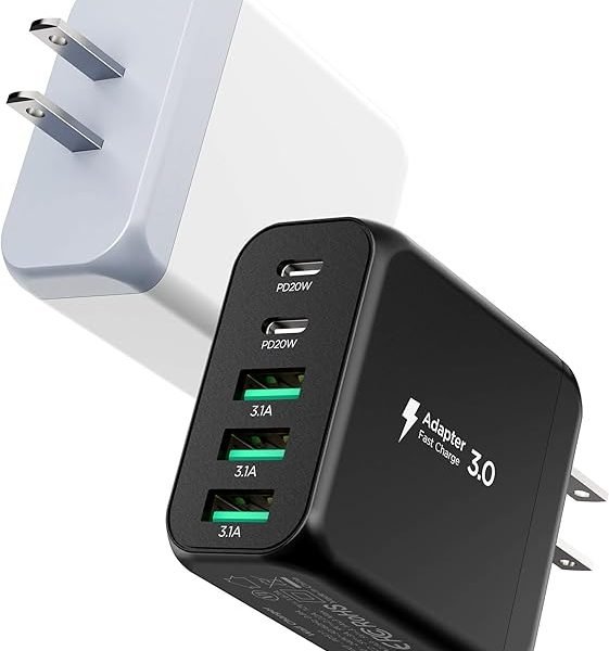 USB C Charger Block, [2-Pack] Type C Charger Fast Charging,50W 5-Port USB Wall Charger Multiport Type C Charging Block Cube for iPhone 16 15 14 13 12 11 Pro Max XS, iPad, Samsung & More