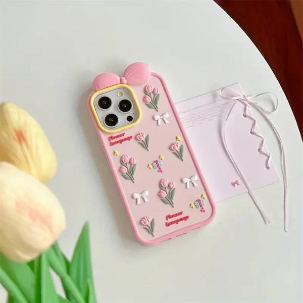 3D Bow Tulip Phone Case with Chain Suitable for Apple 15 16 Promax