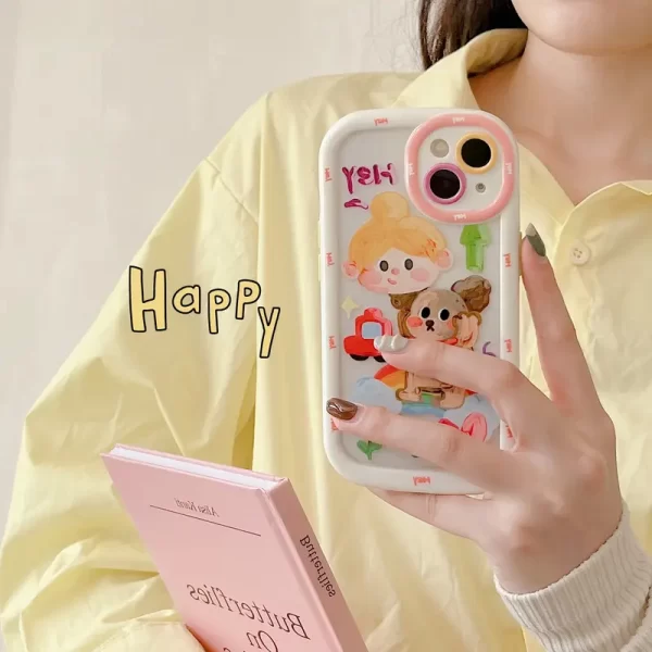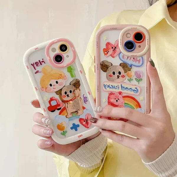 Creamy shell oil painting girl dog phone case for iPhone 15 16 promax