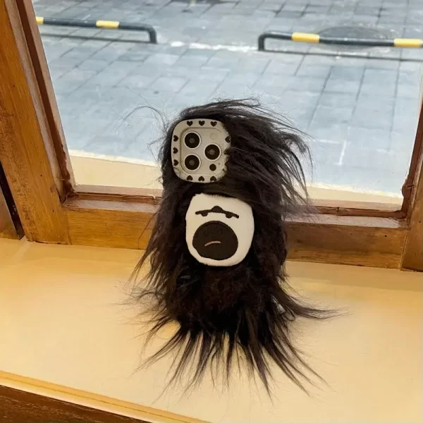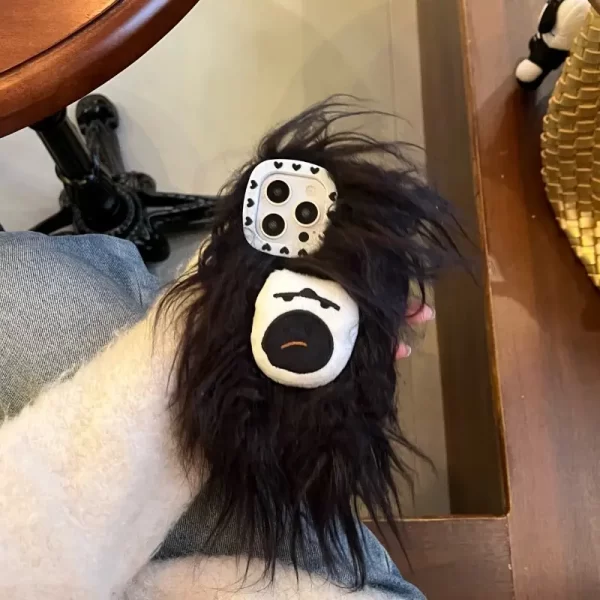 Creative black plush monster phone case, suitable for Apple iPhone 16 and 15 Pro Max, providing comprehensive drop protection.