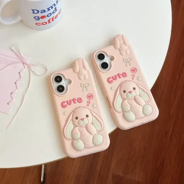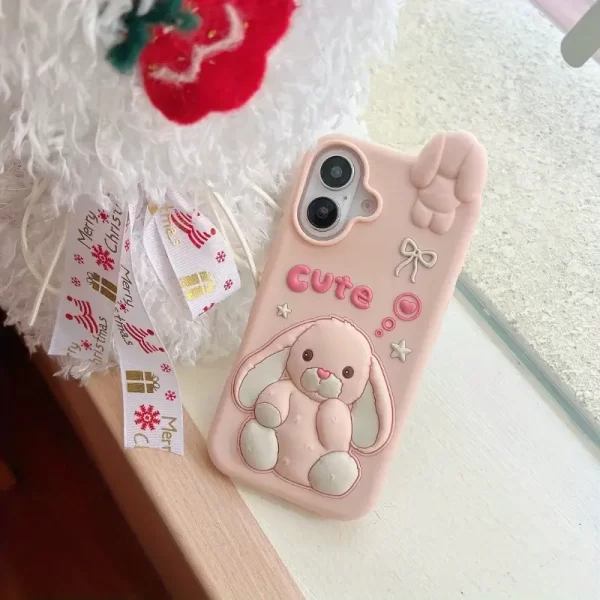 Cartoon silicone protective case with large ears for Apple iPhone 16, 15 Pro Plus Max