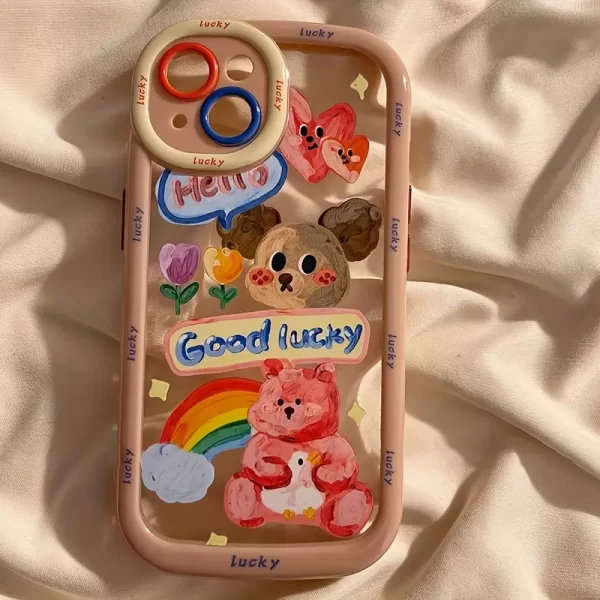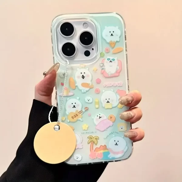 Crystal clear white light IND ice cream self deprecating bear phone case with bear holder suitable for Apple 15 16 Promax