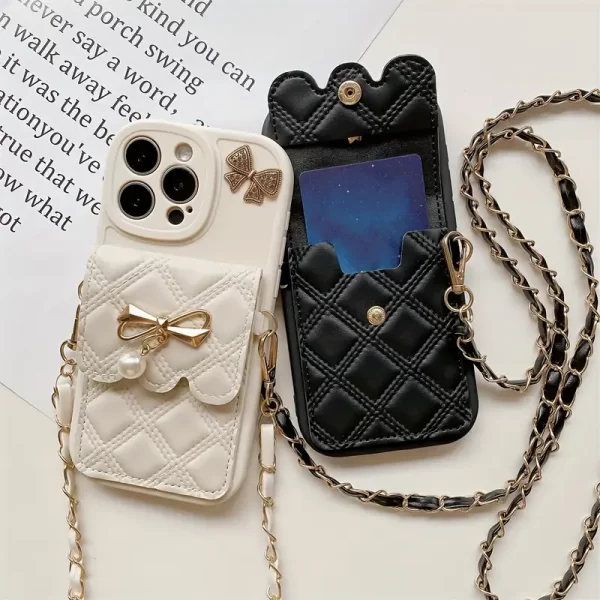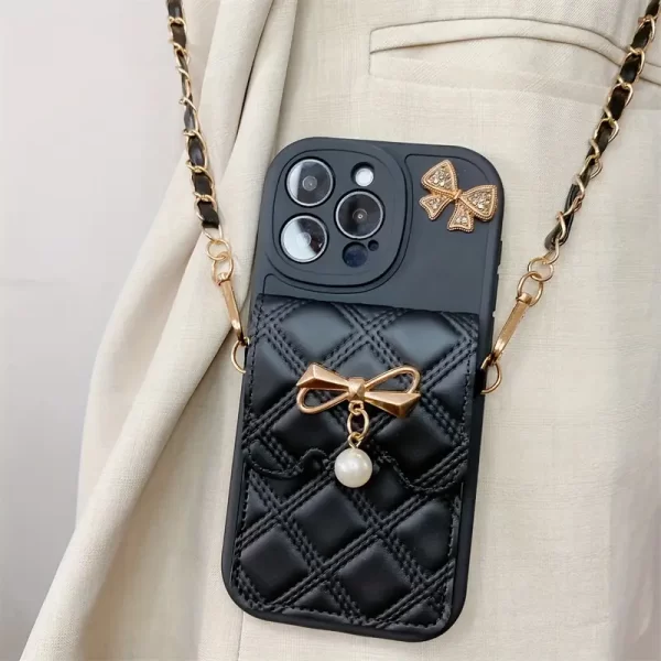 Double-sided diamond-encrusted frame with a bowknot lace pendant, featuring a drop-in silicone case for mobile phone protection, suitable for Apple iPhone 16 Pro Max/16 Pro/16 Plus/16/15 Pro Max/15 Pro/15/15 Plus