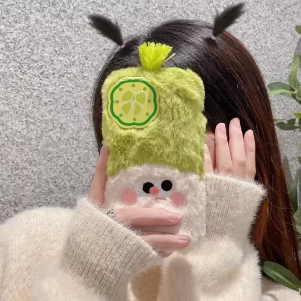 Green plush woven anti fall protective case, suitable for Apple all inclusive anti fall protective case, creatively exclusive for iPhone 15 Pro Max