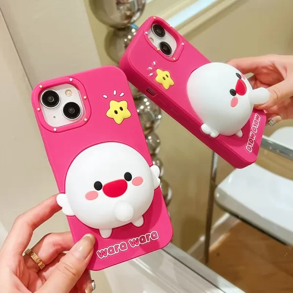 Cartoon silicone protective case with large ears for Apple iPhone 16, 15 Pro Plus Max