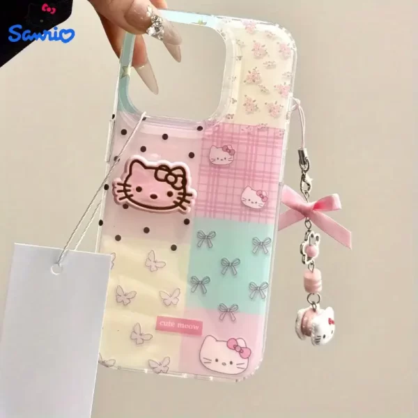 Cartoon plaid splicing KT cat suitable for Apple iPhone 15 phone case 15 15pro 15plus 15pm 16 16pro 16plus 16promax phone case