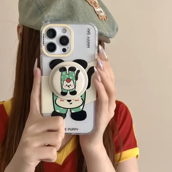 Cute cartoon Panda Cat and Panda Dog magnetic double-layer laminated phone case for iPhone 16 Promax, iPhone 15 Pro/16/Pro/15/Promax series, same style airbag bracket shell protective cover