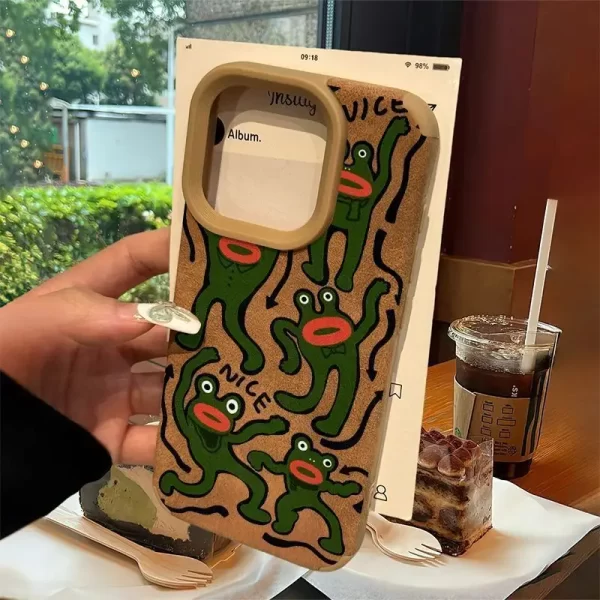 Quirky Frog Compatible Apple 16 Hair Mobile Phone Case Autumn and Winter 15promax High Value Niche 15Plus Line Retro New 14promax Fun xsmax Creative 15pm