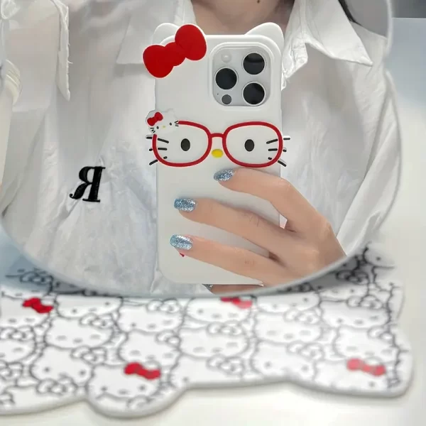 Sanrio has authorized the Sanrio white Hello Kitty 3D silicone phone case, suitable for iPhone 16/15 Plus Pro Max cartoon cute and fashionable phone case, the perfect choice for gifts