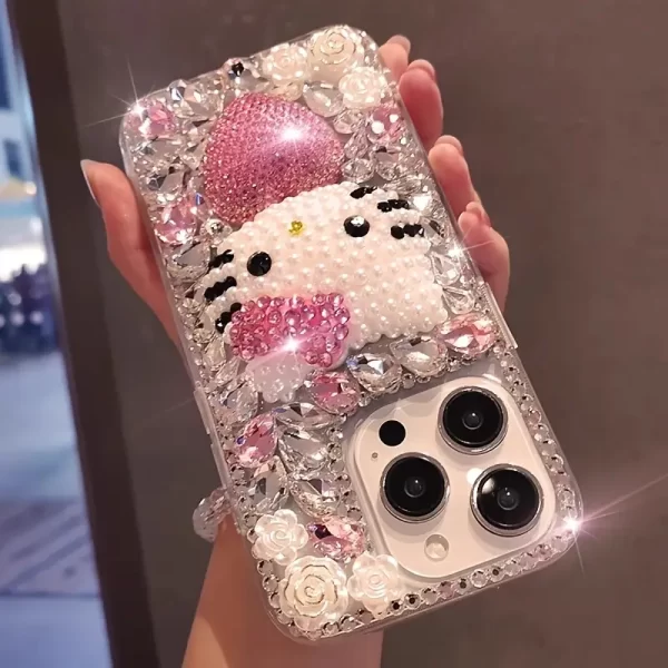 Double-sided diamond-encrusted frame with a bowknot lace pendant, featuring a drop-in silicone case for mobile phone protection, suitable for Apple iPhone 16 Pro Max/16 Pro/16 Plus/16/15 Pro Max/15 Pro/15/15 Plus