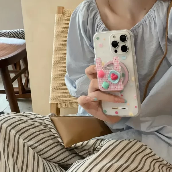 Color button star shaped multi-element+magnetic grid geometric shopping bag phone holder protective case, suitable for Apple 16 Pro Max/16 Pro/16 Plus/15 Pro Max/15 Pro Pro/15 Plus protective case
