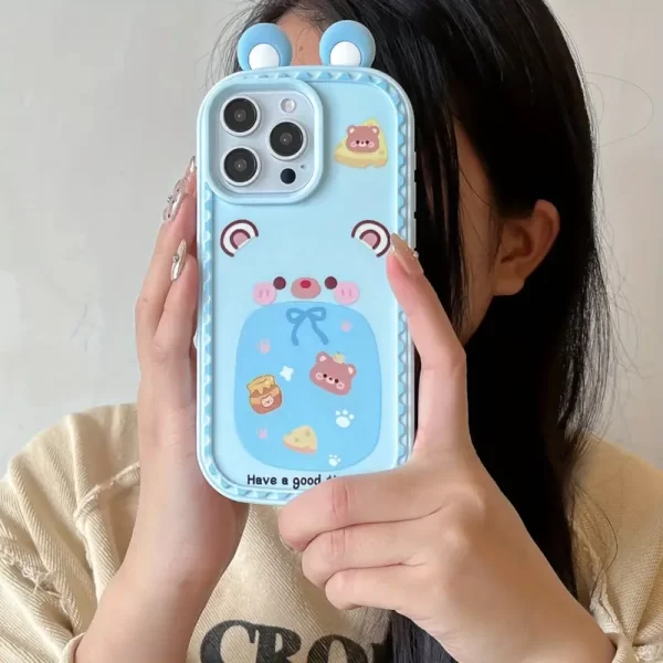 NS style milk blue cartoon pig bear dustproof sliding window cover, suitable for iPhone 16 15 Pro Max phone case, shockproof protective cover
