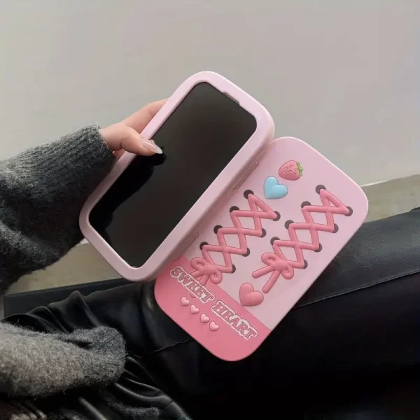Soft and cute cartoon love bow strawberry flip cover suitable for Apple iPhone 16 new 15 phone case all inclusive anti drop phone case