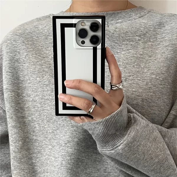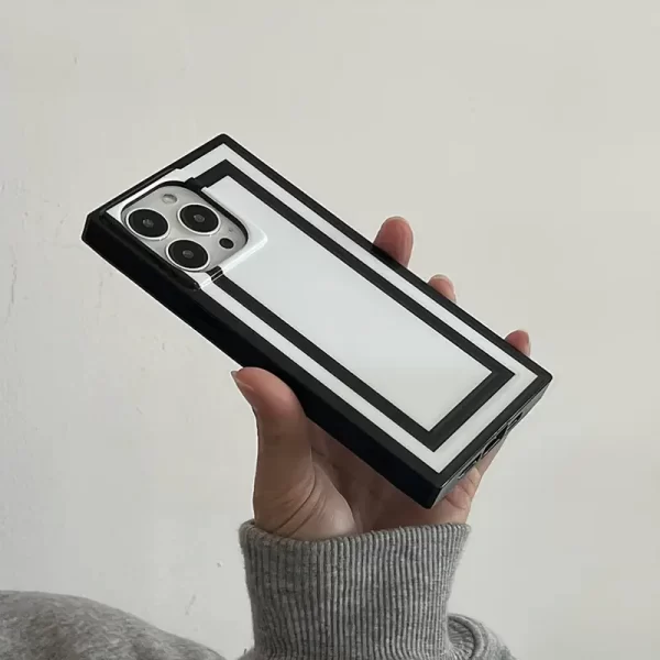 Simple black and white line frame, high-end square aesthetic, full coverage, shockproof protective case, suitable for Apple iPhone 16/XR/15 Plus Pro Max/PLUS and other models, durable, anti-stain, anti-fingerprint, perfect birthday gift for girlfriend, boyfriend, husband, wife, friend or yourself, novel and popular, suitable for both men and women, handsome and beautiful, high-end elegant fashion business gift/present ~ square case – black – white board