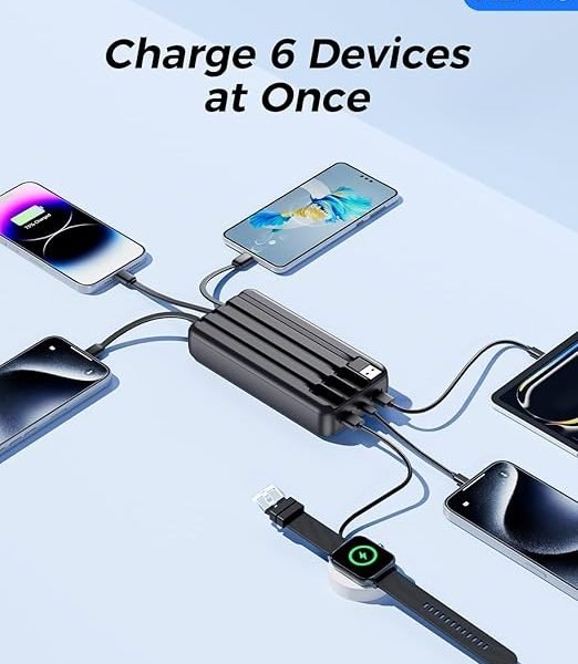Portable Charger,42800mAh Power Bank Built-in Cable,22.5W PD USB C in & Out Fast Charging, External Battery Pack 6 Output & 2 Input, Travel Phone Charger for iPhone 16/15/14/13/12, Android (Black)