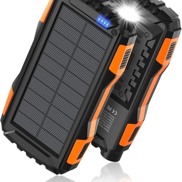 Power-Bank-Solar-Charger – 42800mAh Portable Charger,Solar Power Bank,External Battery Pack 5V3.1A Qc 3.0 Fast Charger Built-in Super Bright Flashlight (Orange)