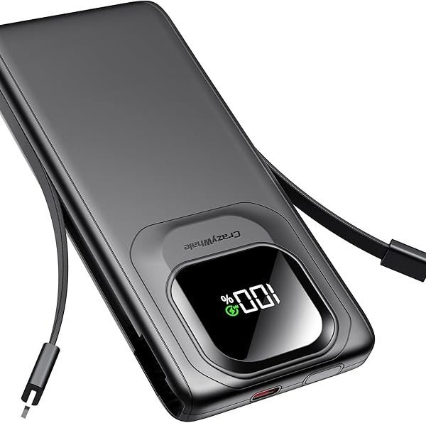 Portable Charger with Built-in Cables,22.5W Super Fast Charging Power Bank Slim Phone Charger,10000mAh Travel Battery Pack Battery Bank with Smart LED Display for iPhone, Android & USB-C Devices