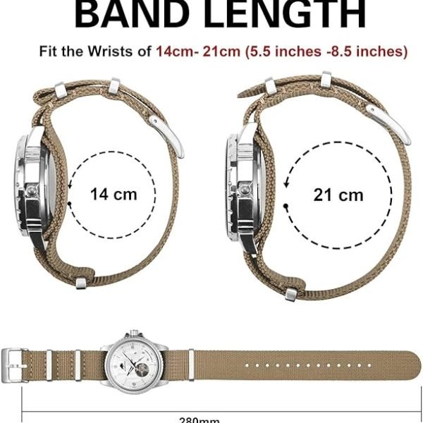 ANNEFIT Nylon Watch Band 16mm 18mm 20mm 22mm, One-Piece Waterproof Military Watch Straps with Heavy Buckle