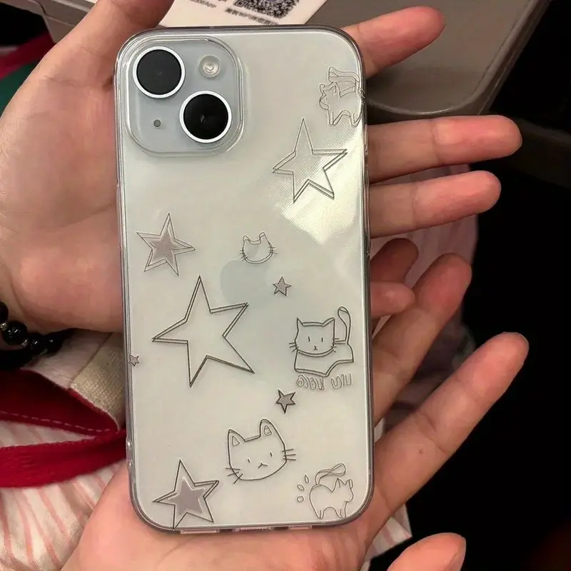 1 star shaped cute cat cartoon pattern transparent all inclusive TPU phone case suitable for iPhone 16 15 Pro Max Plus