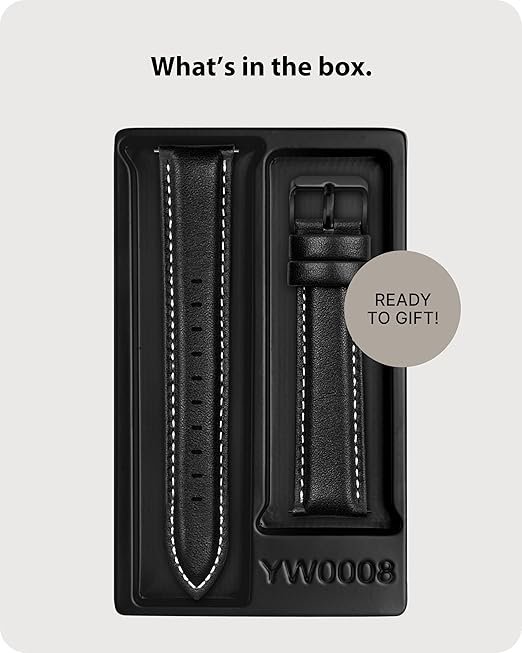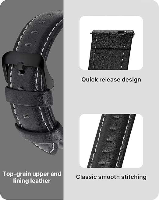 - [High Quality Leather] The flexible genuine leather 20mm watch band makes watch wearing more comfortable. Thanks to the classic colour combination, your watch is suited for all occasions. Two cross stitched collars and a reinforced lining provide durability and dependability
