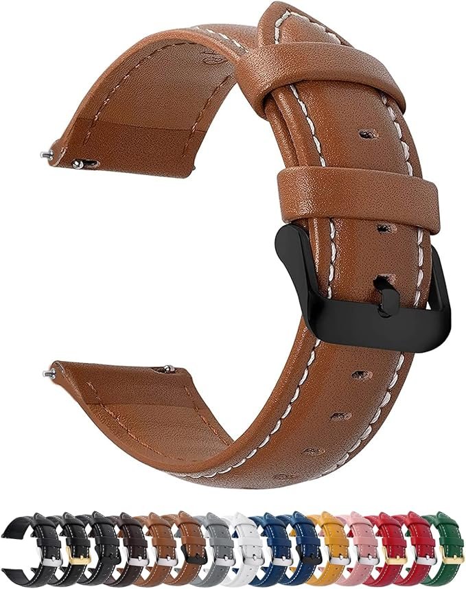 12 Colors for Quick Release Leather Watch Band, Fullmosa Axus Genuine Leather Watch Strap Women Men 14mm, 16mm, 18mm, 19mm, 20mm, 22mm or 24mm (choose the proper size), Brown+black buckle, Classic