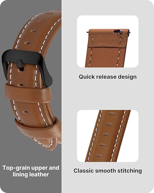 - [High Quality Leather] The flexible genuine leather 20mm watch band makes watch wearing more comfortable. Thanks to the classic colour combination, your watch is suited for all occasions. Two cross stitched collars and a reinforced lining provide durability and dependability