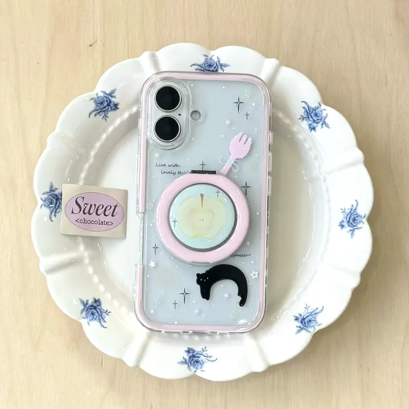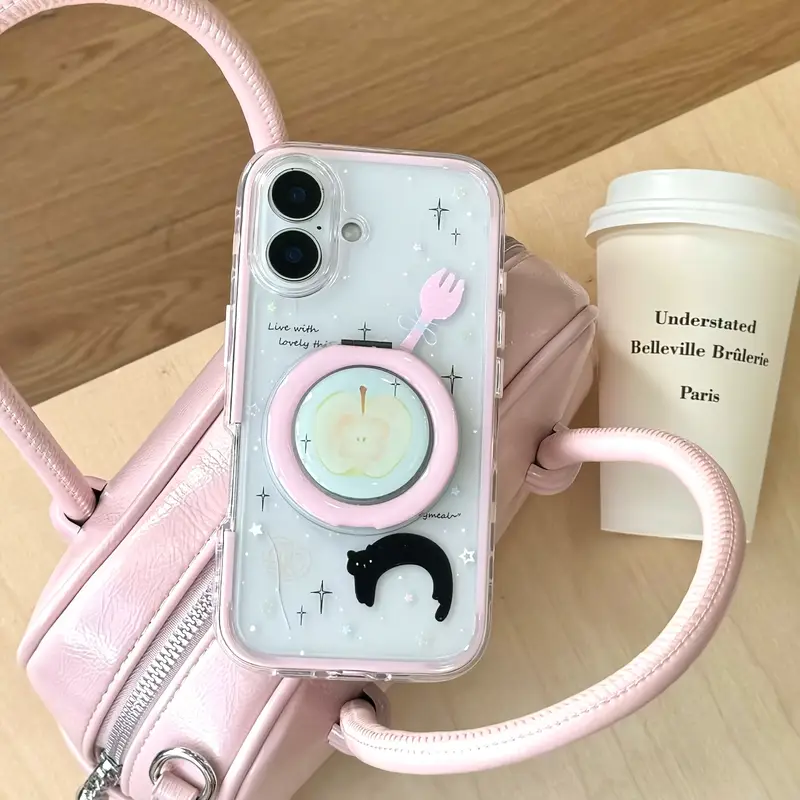 2-in-1 Apple knife and fork + 360-degree phone holder for iPhone 16, 15, Pro Max