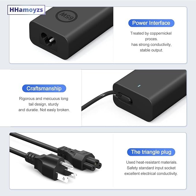 65W Laptop Charger USB C – Compatible with Dell Latitude 5420/5520/7420/7430/7480/7490 & Inspiron 14/16/7620/2in1/XPS 13 LA65NM190