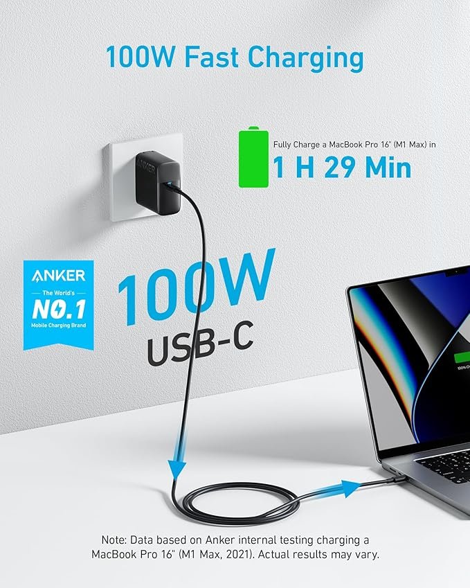 - High-Speed Charging: The 100W USB C port pumps out enough power to charge a wide range of devices in record time. Charge your MacBook Pro 16″ (M1 Max, 2021) to 100% in 1 hour and 20 minutes, so you can stay productive all day.