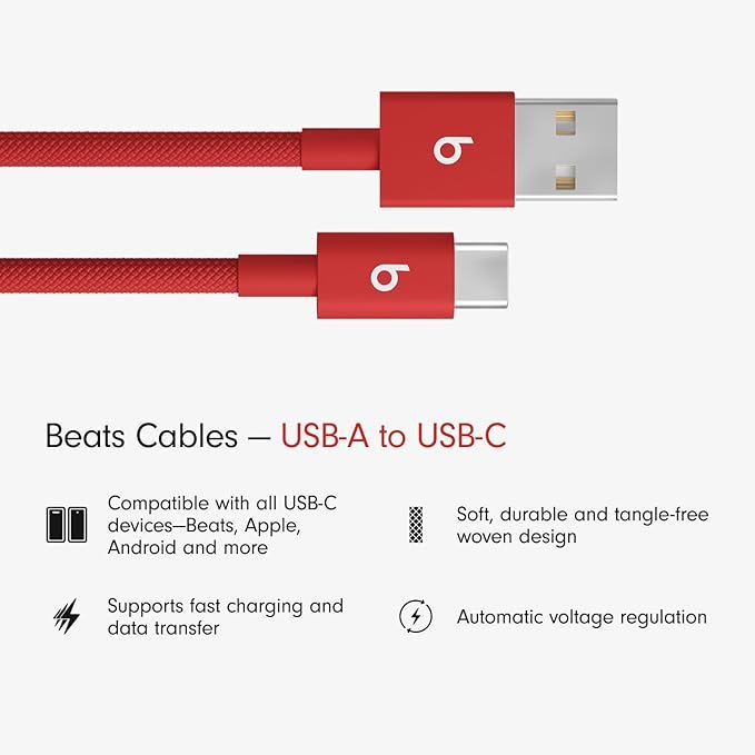 Beats USB-A to USB-C Woven Cable Fast Charging Durable and Tangle-Free Design Compatible Charger for Apple & Android Devices (1.5 m, 5 ft) – Rapid Red