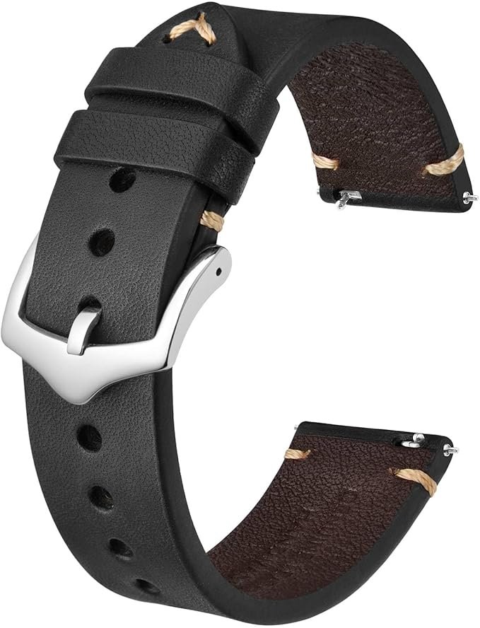 BISONSTRAP Men’s Watch Bands, Hand-Stitched Leather Watch Straps, Quick Release, 18mm 19mm 20mm 21mm 22mm