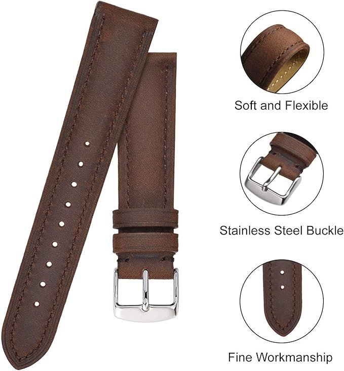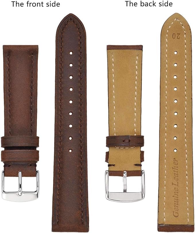 - WATCH BAND MATERIAL: Vintage Crazy Horse Leather lined with soft genuine leather, comfortable on your wrist, polished solid stainless steel buckle