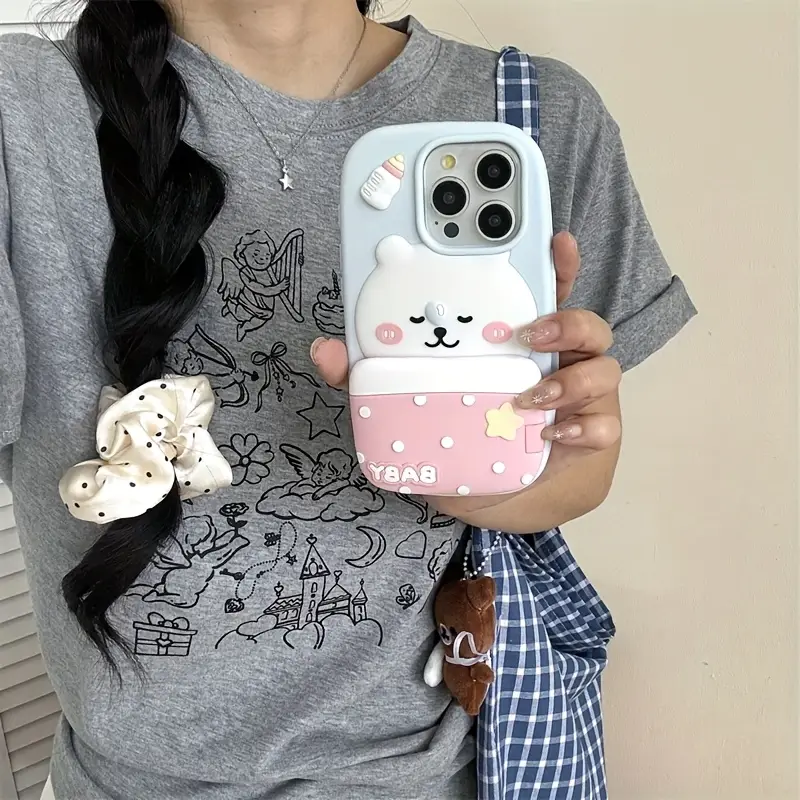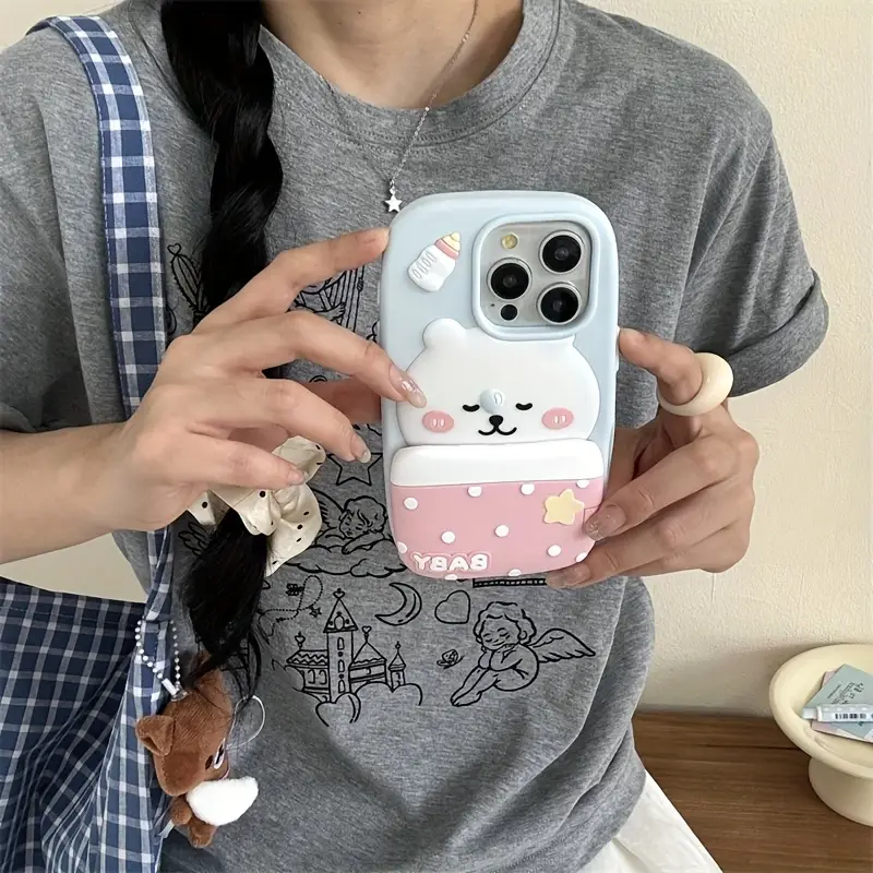 Be the first to review “Cartoon cute and adorable flip-style quilt stand with a white bear phone case, suitable for Apple iPhone 15 and 16 Pro Max” Cancel reply