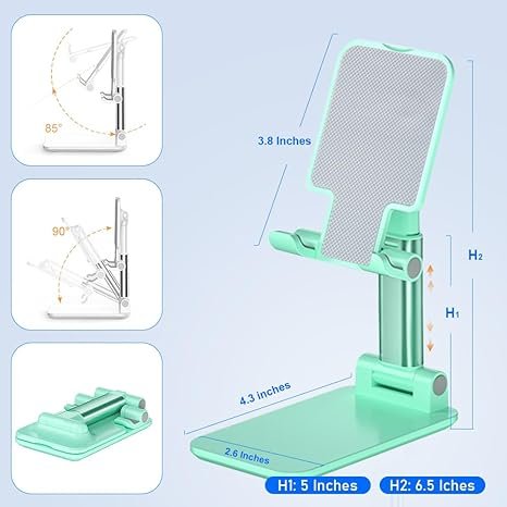 Be the first to review “Cell Phone Stand, Angle Height Adjustable Cell Phone Holder with Silicon Pad for Desk Fully Forldable Mobile Phone Holder Compatible with All Mobile Phones, MT-6, (Green)” Cancel reply