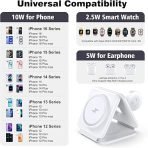 - 3 in one Fold Up Charger Station: The wireless charging pad contains a magnetic suction, which can automatically and accurately charge the iPhone 12 and above series. The magnetic suction is suitable for iPhone 16/16 Plus/16Pro/16 Pro max15/15 Plus/15Pro/15 Pro max/14/14 Pro/14 Plus/14 Pro Max/13/13 Pro/13 Pro Max/12/12 Pro/12 Pro Max. It is also compatible with Apple Watch Ultra 10 9 8 7 6 5 4 3 2 & AirPods(Note: only support AirPods 2/3/4 with magnetic devices).