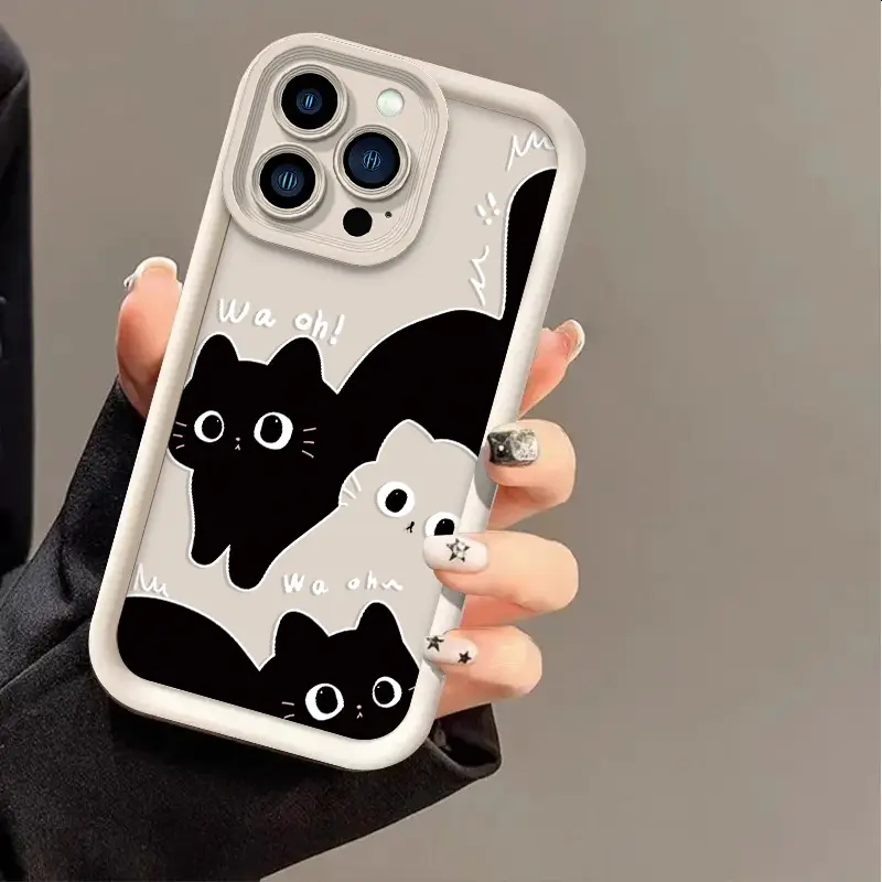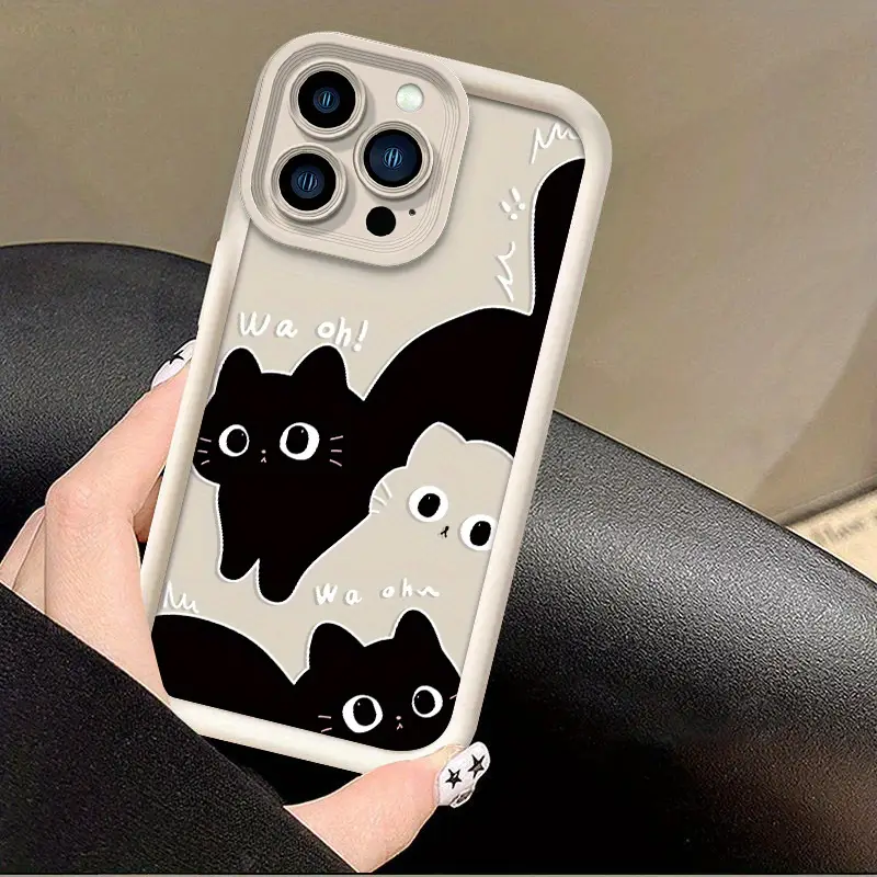 Creative design pattern shockproof phone case, suitable for black and white cat style, compatible with iPhone 15/15 Pro/15 Plus/15 Pro Max/16/16 Pro/16 Plus/16 Pro Max