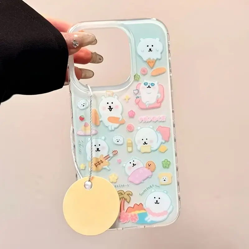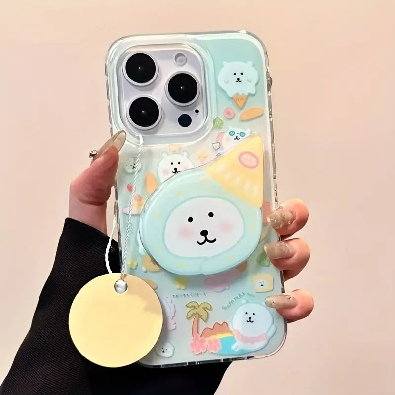 Be the first to review “Crystal clear white light IND ice cream self deprecating bear phone case with bear holder suitable for Apple 15 16 Promax” Cancel reply