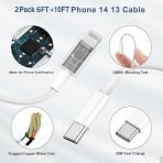 Fast Charger for iPhone 14 13 12 Charge Fast Charging, 2Pack 6FT+10FT USB C to L Cable with 20W USB C for i Phone Charger Block, Compatible with iPhone 14 13 12 Pro/14 Plus/13 Pro Max – White