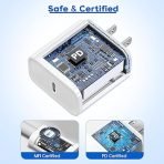 - 【Safety Efficient Fast Charging】The Power Delivery Wall Charger for iPhone owns bulit-in multi-protection system, avoiding from over-voltage, over-charge, over-heat, etc. The smart chip including in the Apple certified cable match the current required by the iPhone/iPad device automatically, charge your iPhone/iPad device fast, safely and steadily.Tangle-free 6 Feet length is convenient for usage while charging and sync at home/office/travel in bed, hotel rooms, and more.