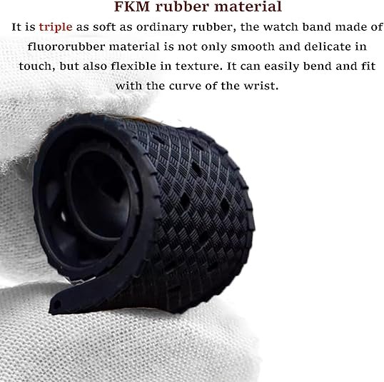 - ćPremium MaterialćTropical style FKM rubber strap made of genuine Fluororubber. It has higher density than traditional rubber or silicone watch band on the market, is softer, more skin friendly and can be bent at will. And the longer you wear it, the more comfortable it will be. Solid 316L brushed stainless steel buckle adds a luxury to the strap.