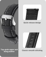 - [High Quality Leather] The flexible genuine leather 22mm watch band makes watch wearing more comfortable. Thanks to the classic colour combination, your watch is suited for all occasions. Two cross stitched collars and a reinforced lining provide durability and dependability