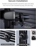 - Quick and Secure Installation: Installs in seconds on both horizontal and vertical vehicle air vent blades via rubber prongs that provide a vise-like grip. Additional support foot prevents the mount from drooping even when holding larger, heavier phones.