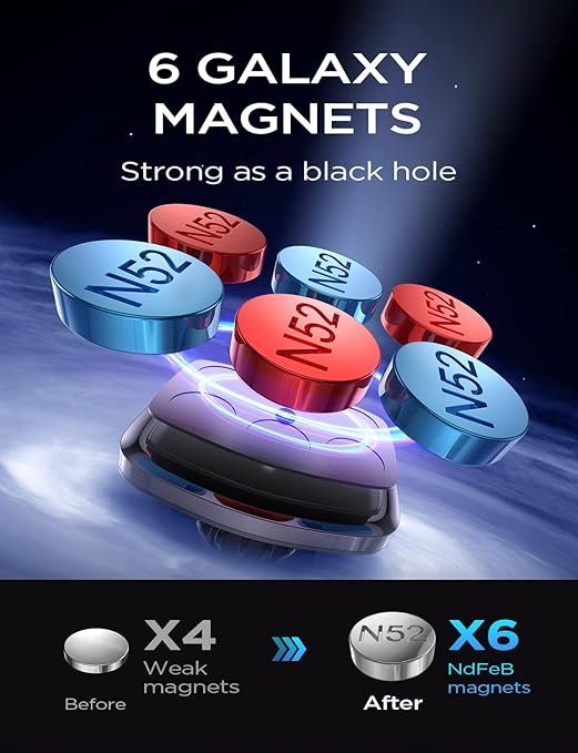 - LOCK YOUR PHONE STABLE: LISEN magnetic car phone holder mounts with 6 built-in strong neodymium iron boron magnets that hold up to 7.7lb / 3.5kg (15 x iPhone 13). Thanks to the strong suction power, your mobile phone or tablet will be kept in place even on bumpy roads. PLEASE NOTE: 1. The phone holder for car fits all 4-7” iPhone, Samsung, and other cellphones with thick cases. 2. It is recommended to install the metal plate on the back of the phone or phone case.