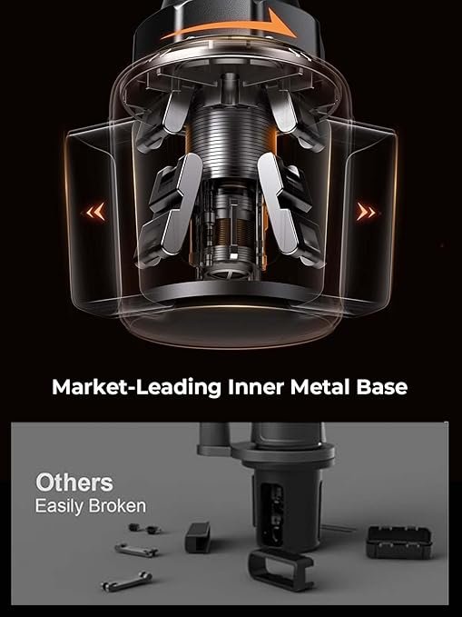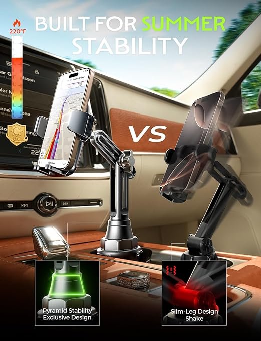- STABLY FIT 3-4.6” CUP HOLDERS: Our Cup Phone Holder for Car is compatible with 3-4.6 inch Car Cup Holder (unlike others on the market that only support 3-4 inches), fitting almost all cars, Bmw, Ford, Toyota, Trucks, and even golf carts. The super stable base, featuring three protruding extension structures and non-slip silicone, forms a triangular locking structure to prevent popping out, ensuring a perfect and steady fit.