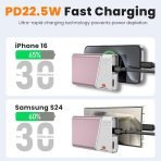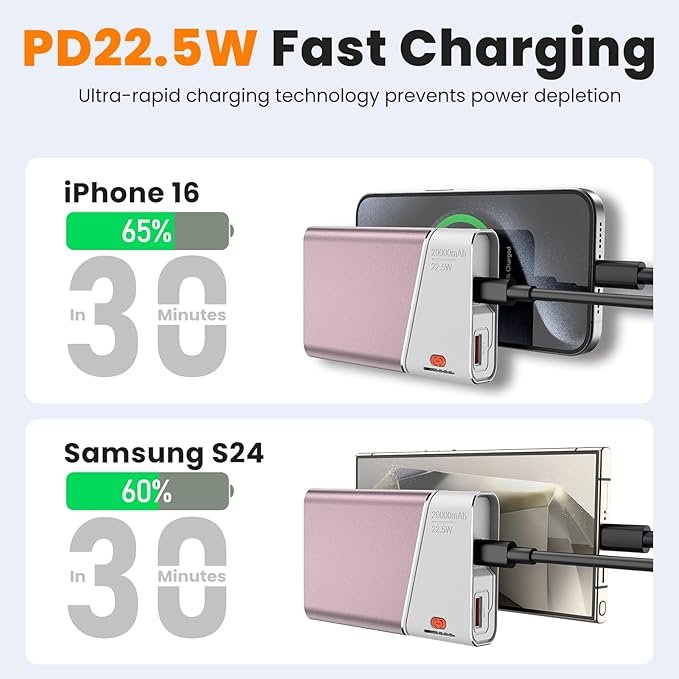 - 22.5W PD Super Fast Charging – Speed Without Sacrifice. 65% charge in 30 mins for iPhone 16 (3x faster than 10W). Advanced heat dissipation in our metal casing prevents slowdowns, keeping your power bank charged safely at full speed