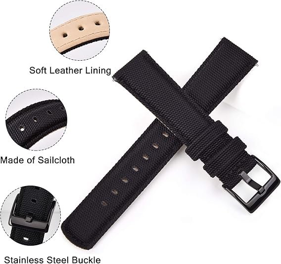 - Premium Materials: Ritche sailcloth watch straps adapts premium nylon weave sailcloth. It is soft breathable and durable. The bottom of this watch band adapts reinforced matte lining and against the skin and minimizes slipping while providing ideal comfort. The buckle part of this sailcloth watch strap is brushed, which adds a sense of fashion to the strap.