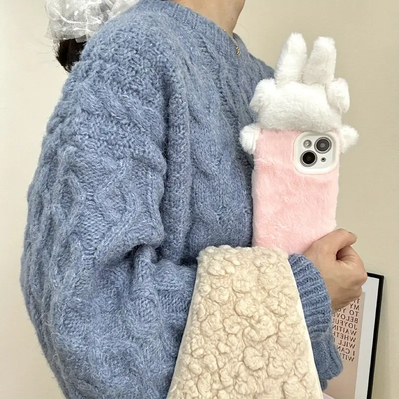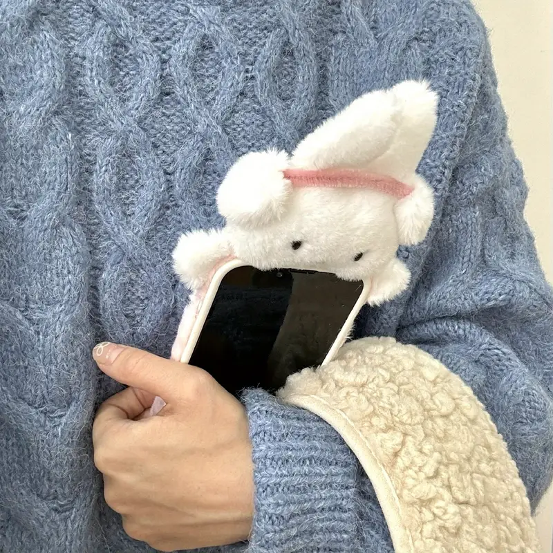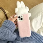 Suitable for iPhone 16promax plush cute earmuffs, bunny 15 phone protection case, plush high-value girl heart phone case